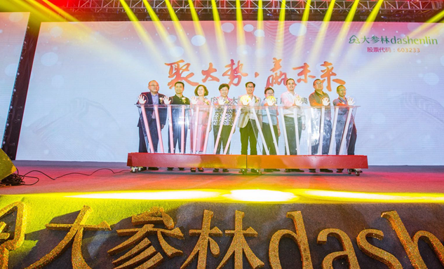 云顶国际药业集团董事长刘景萍女士与大参林医药集团董事长柯云峰先生、中国医药商业协会执行会长付明仲女士等嘉宾共同开启了“聚大势•赢未来"大参林工商合作峰会的大幕。