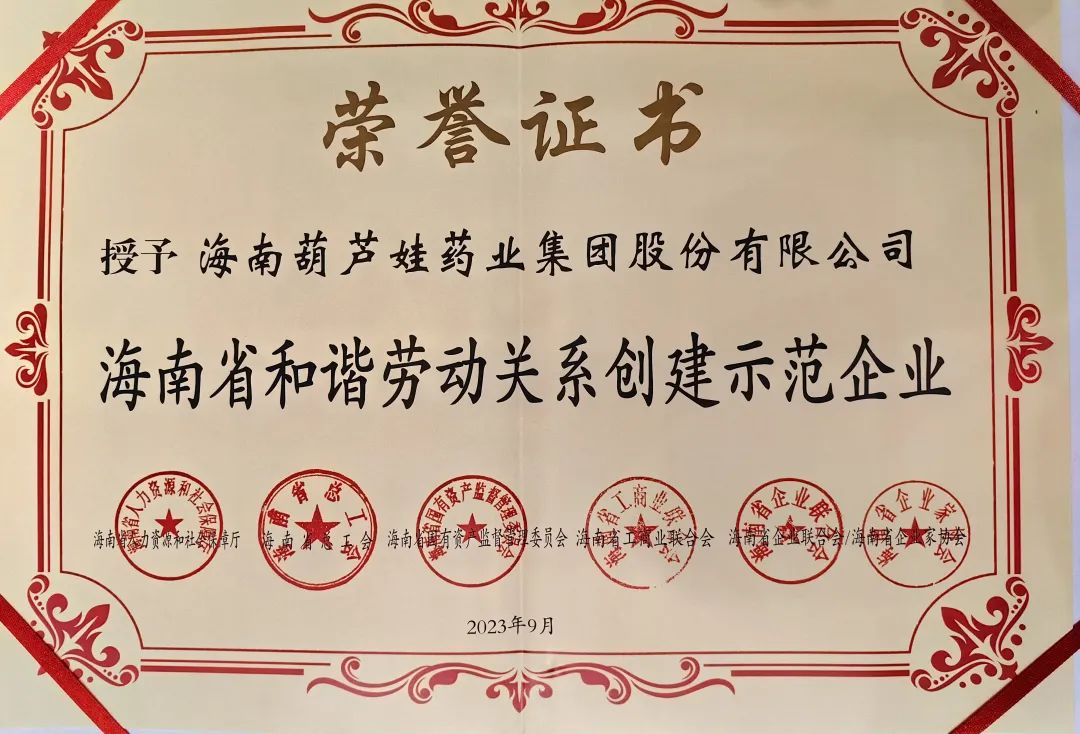 云顶国际药业集团获评“海南省和谐劳动关系创建示范企业”